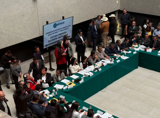La Comisión de Recursos Hidráulicos, Agua y Saneamiento de la Cámara de Diputados aprobó hoy el dictamen a la iniciativa del Ejecutivo que crea una nueva Ley General de Aguas y se reforma la Ley de Aguas Nacionales, y lo remitió a la mesa directiva, para que comience su debate en el pleno de inmediato, ante la advertencia de los productores de un bloqueo de 48 horas al recinto.